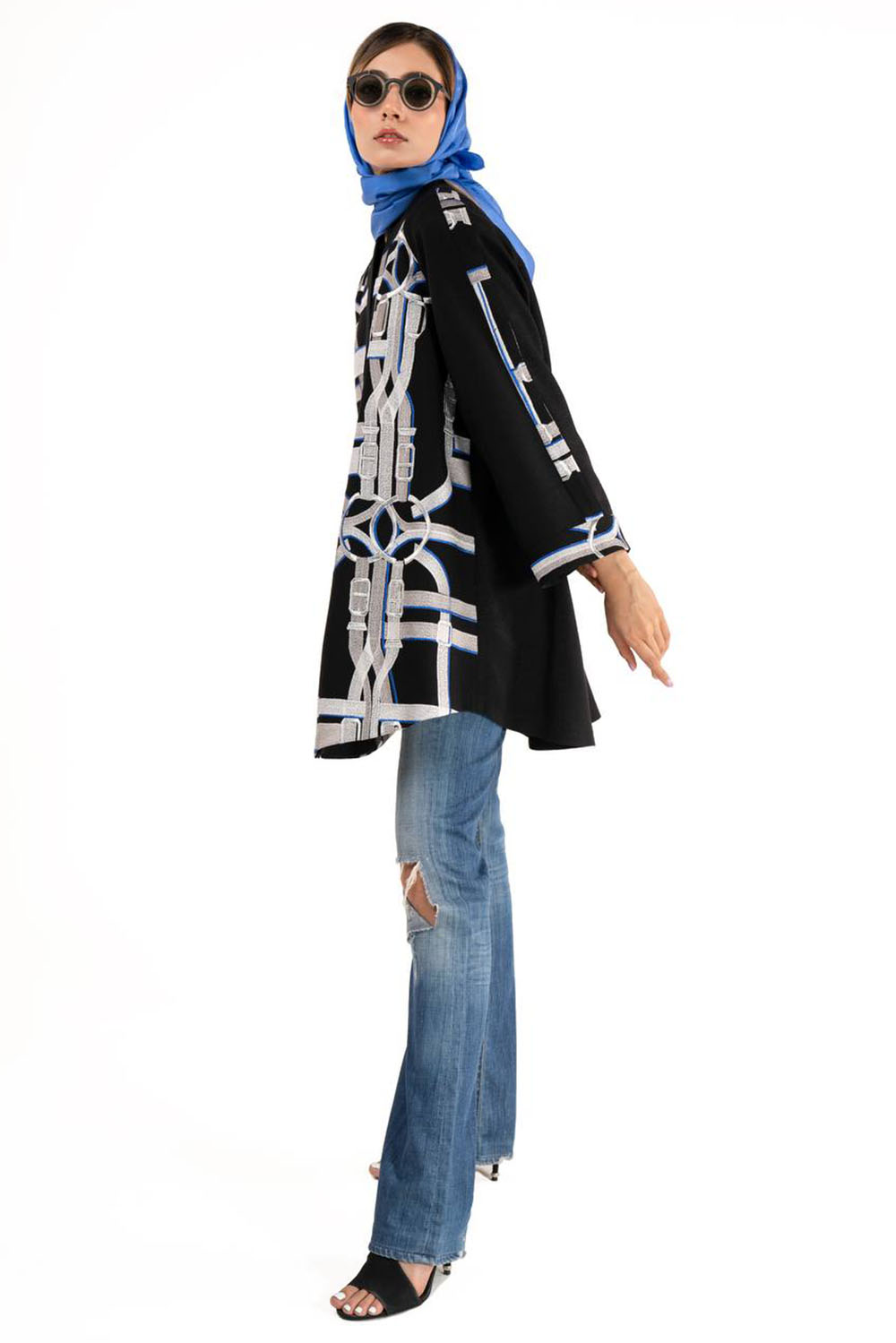 Be the first to review “Black below waist jacket- saddles, chains and belts embroidered in gold/brown/ dark grey. With horse dua embroidered on back” Cancel reply