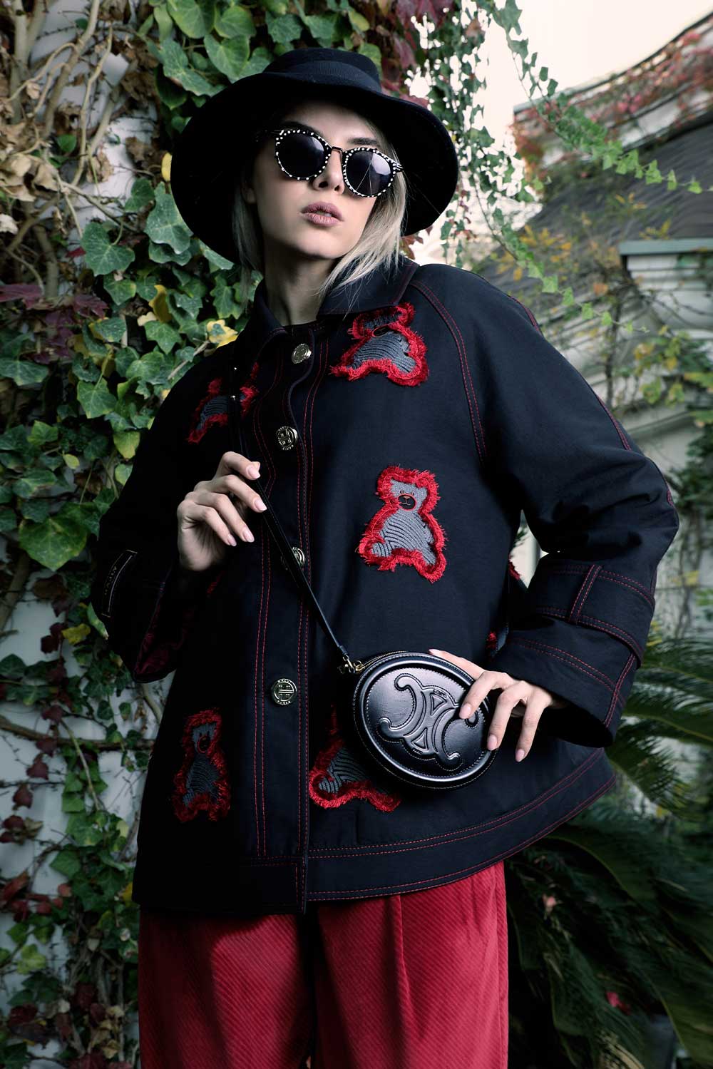 Bordeaux bomber with delicate teddy embroidery