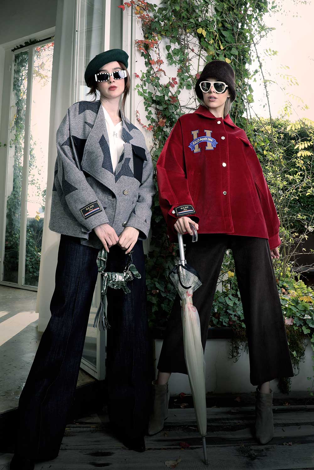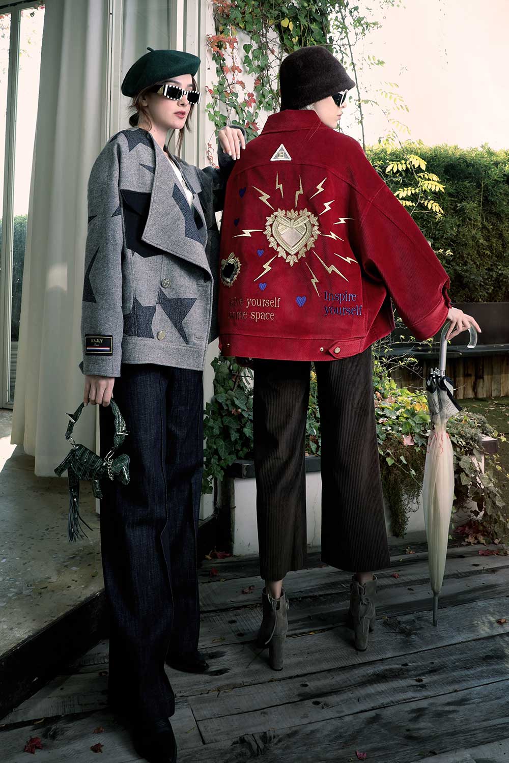 Signature autumn velvet jacket in cardinal red with meticulous top stitching