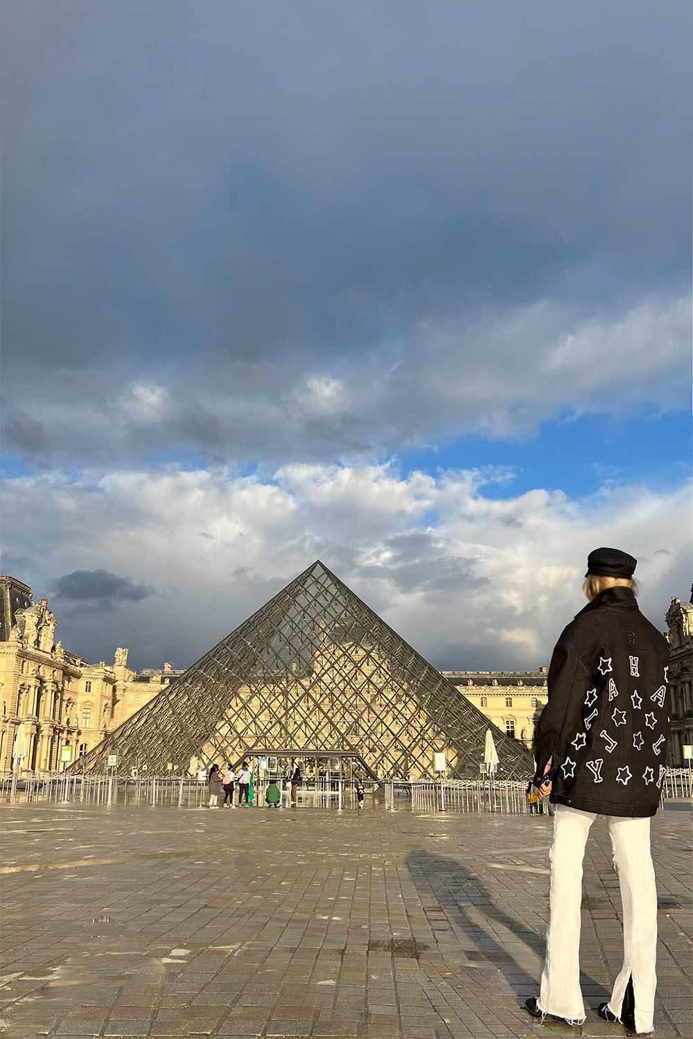 Home2023June Dark denim hip length jacket with HALLY letters and star’s embroidered on back