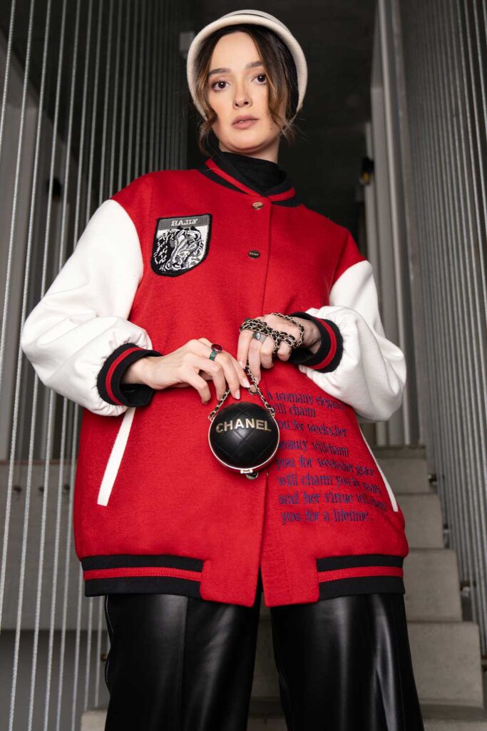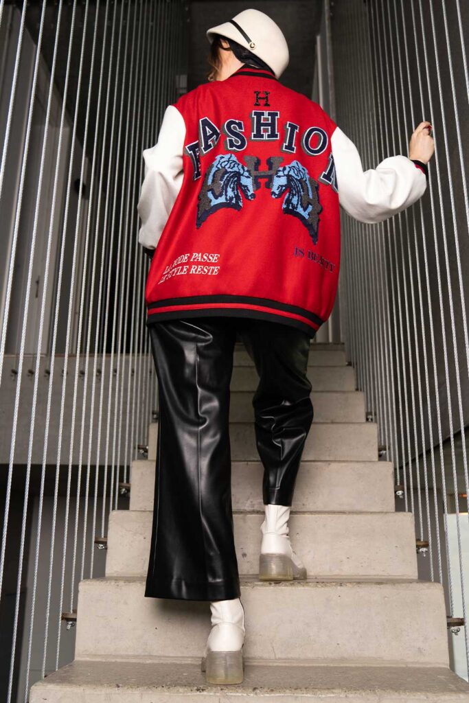 Red and white HALLY varsity jacket