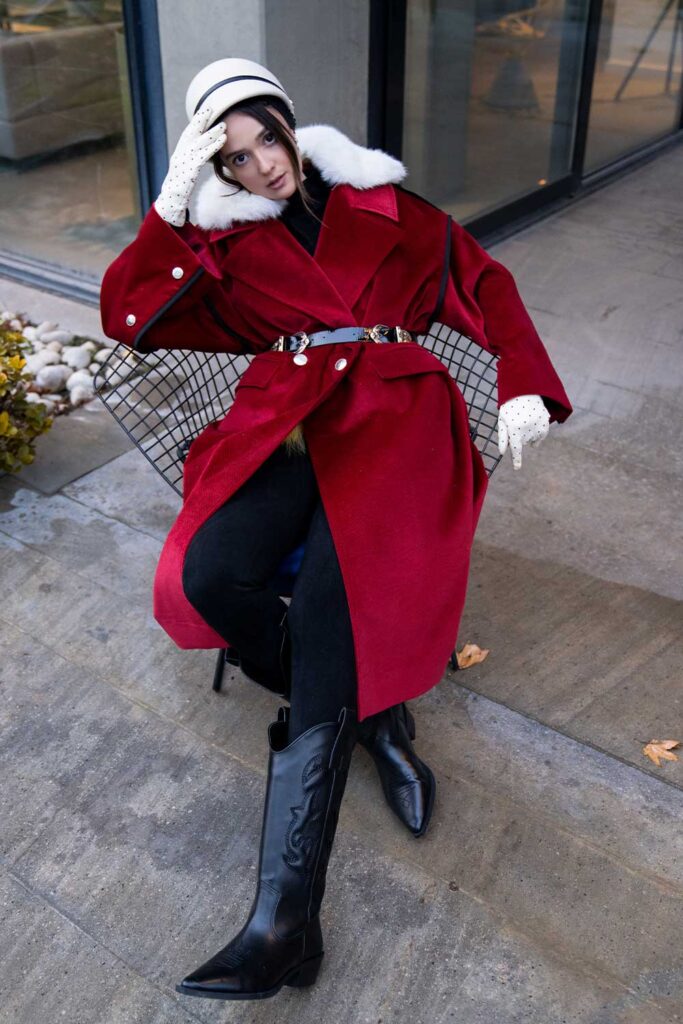 Matchstick Red Italian long coat with large collar