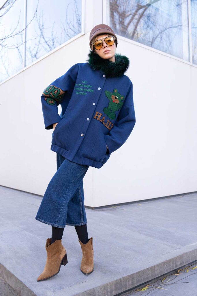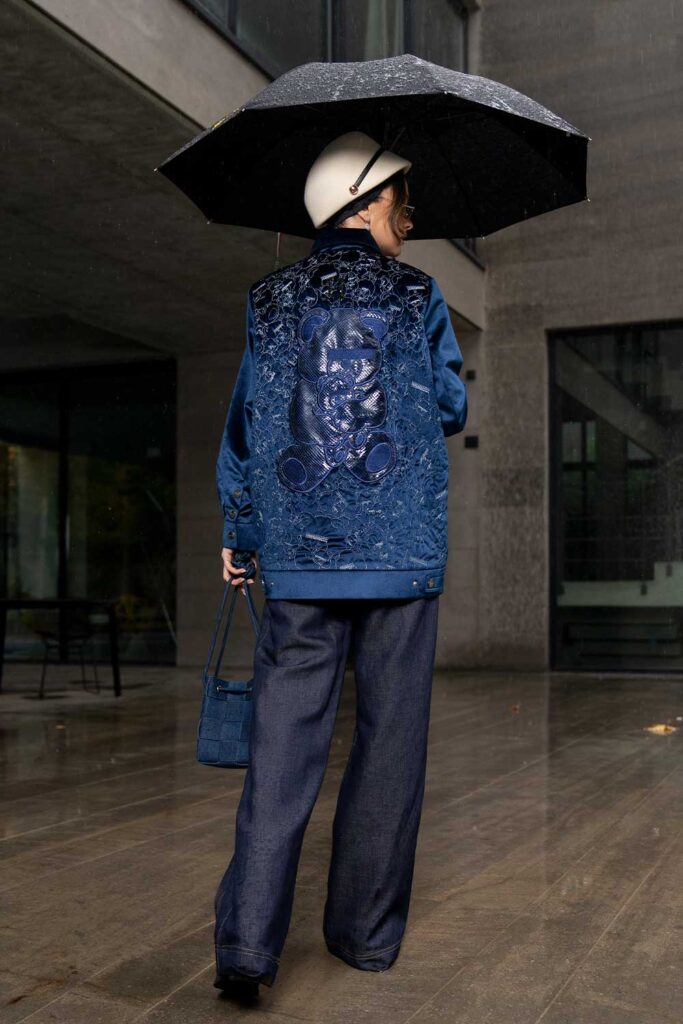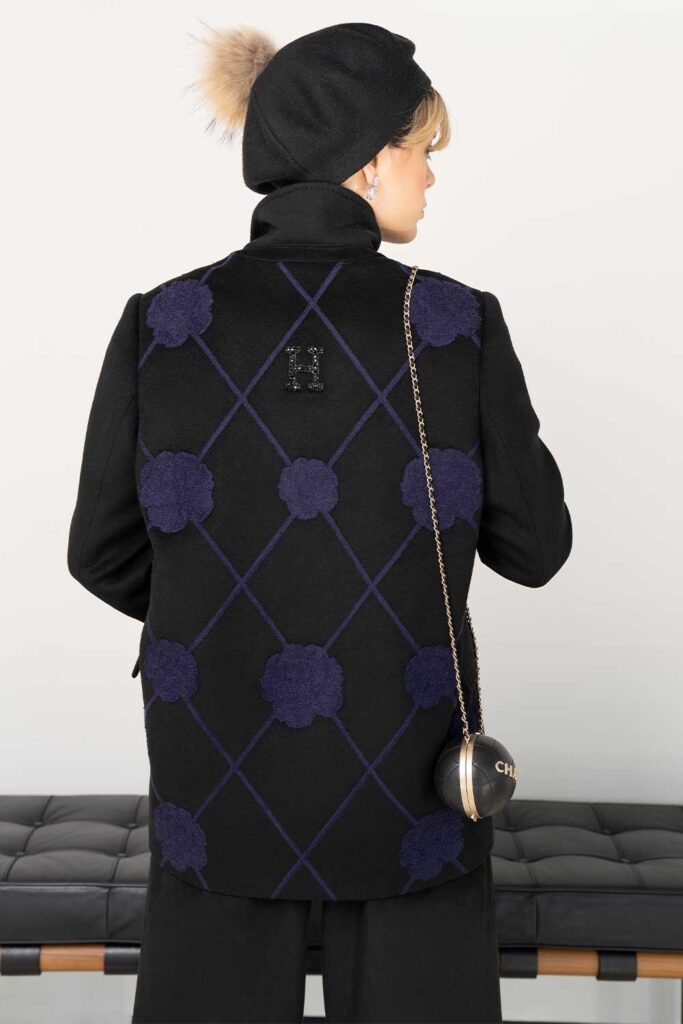 Black cashmere jacket with true blue embroidery all over