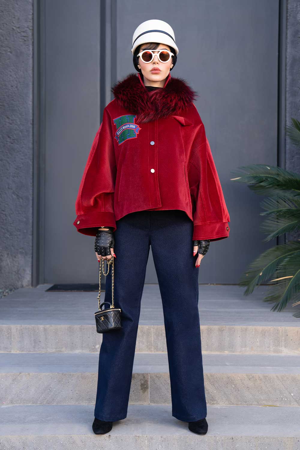 Home2024Obsession Collection Deep matchstick red velvet jacket and heart and star embroidered on back