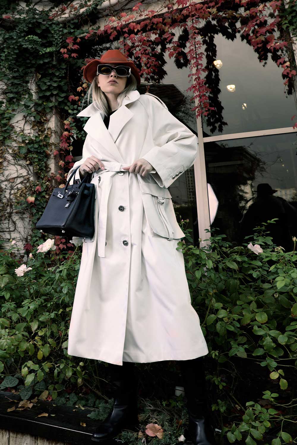 Home2024December Embroidered white raincoat with pockets and a ailored fit