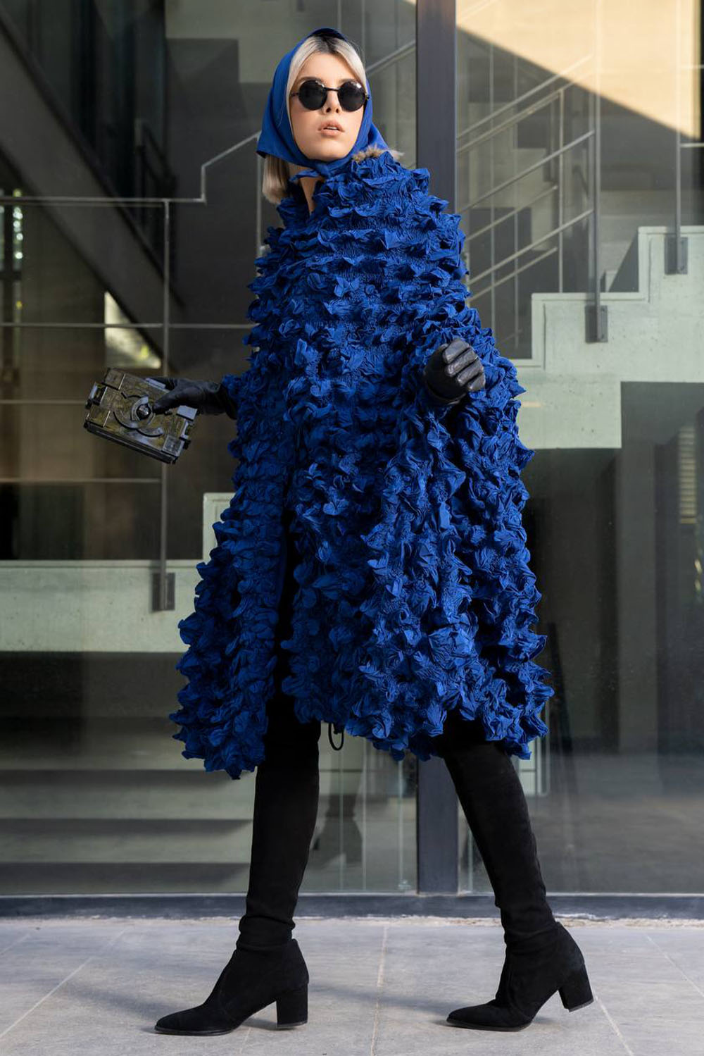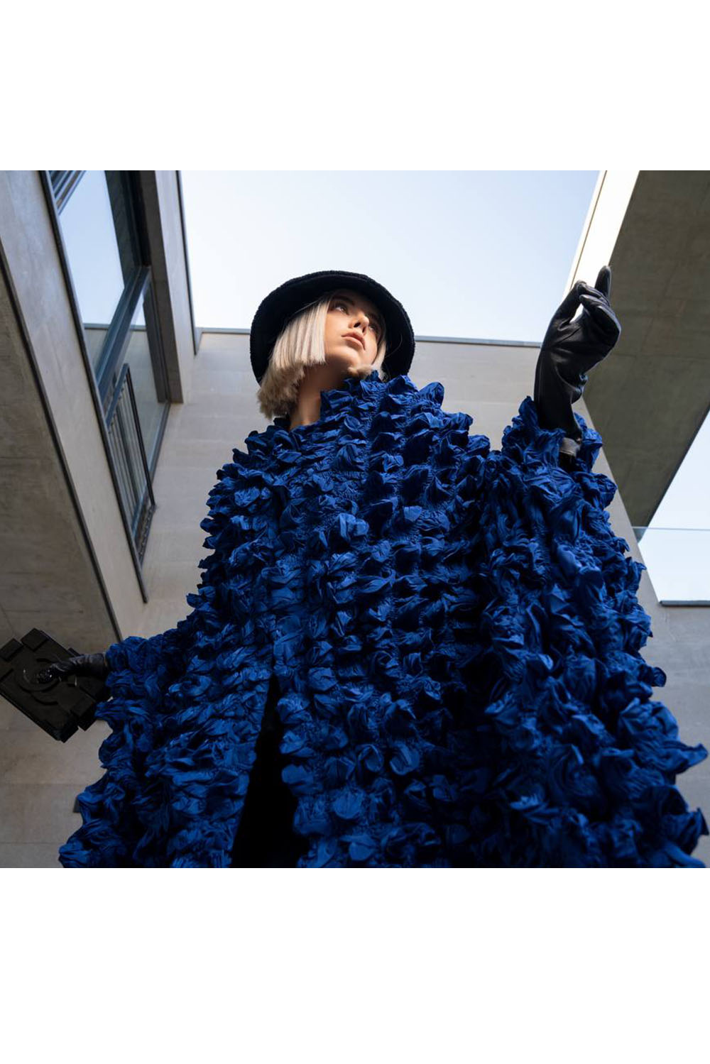 Home2022Jeannette Collection Full length indigo blue hand sewn unique coat