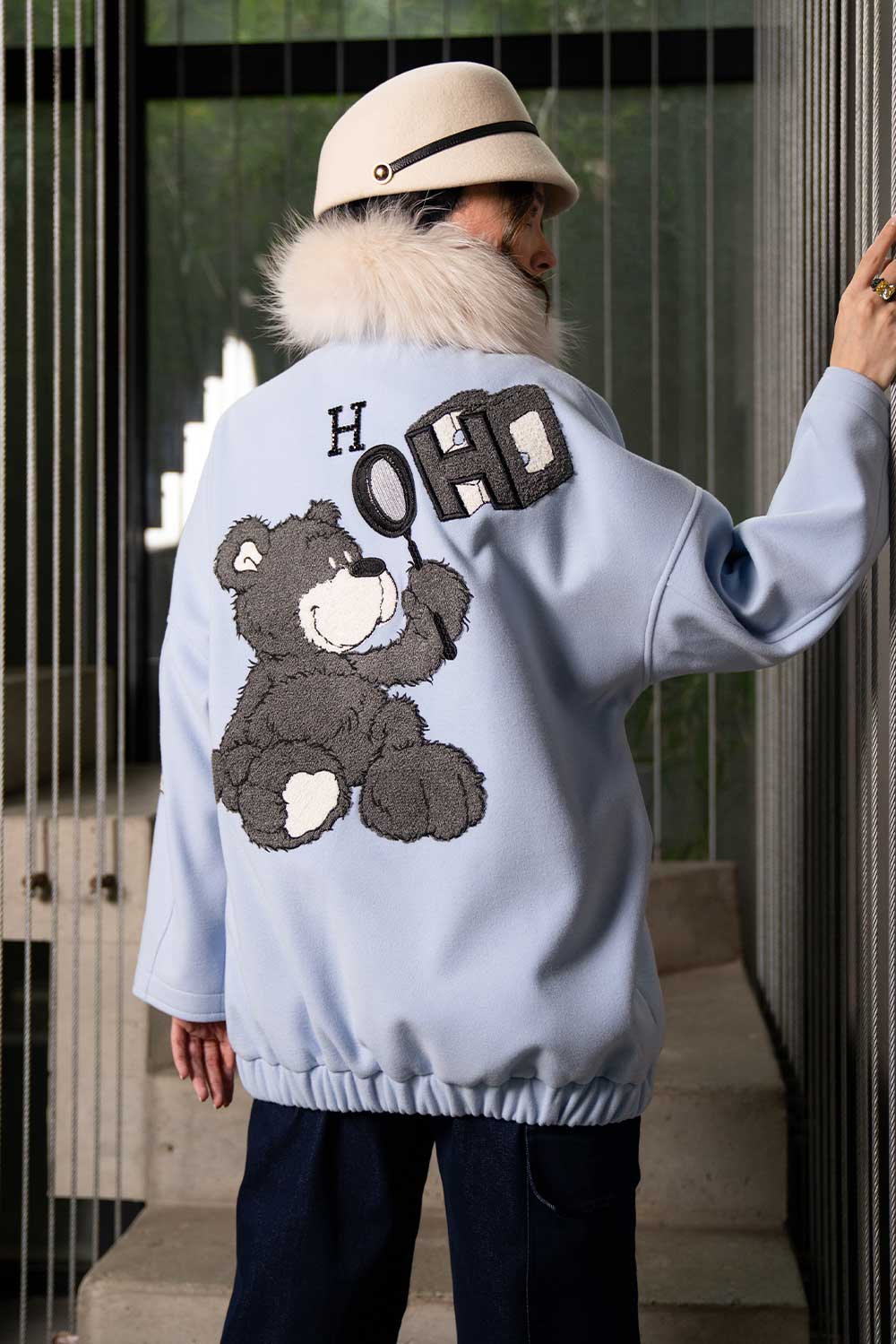 Home2024Obsession Collection Grey Teddy embossed HALLY pastel blue jacket with fur collar