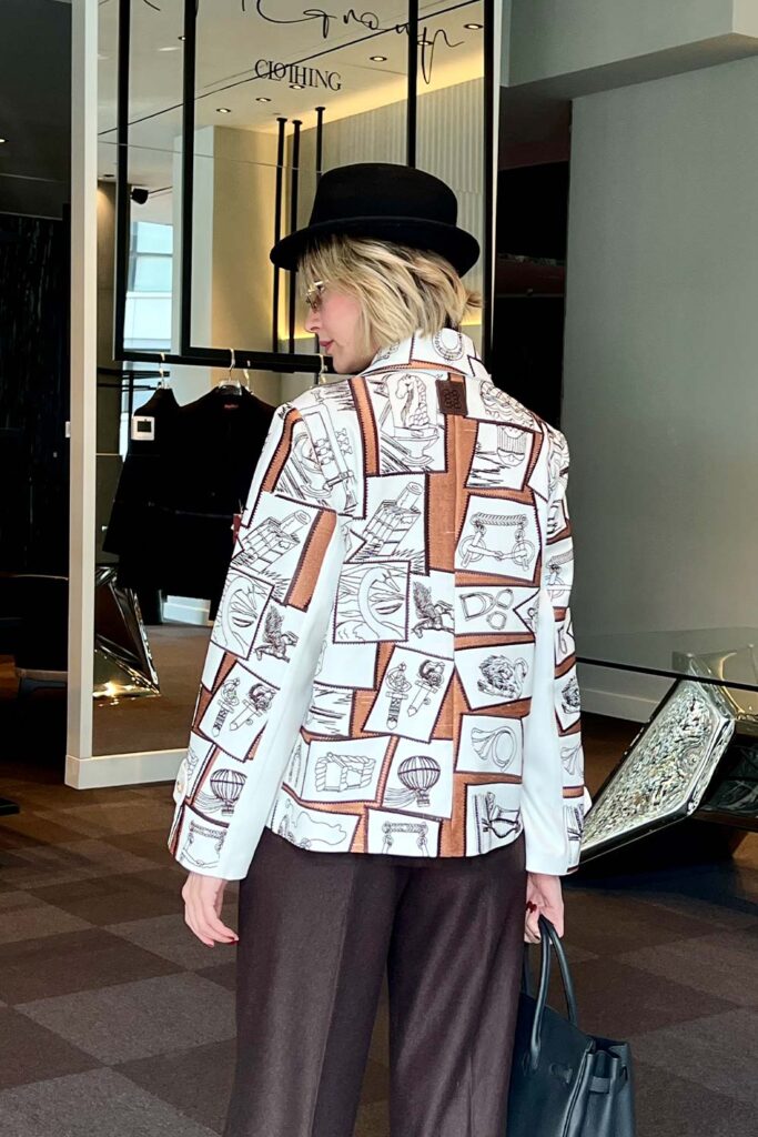 Grey jacket with horse embroidery with signature H in a circular pattern