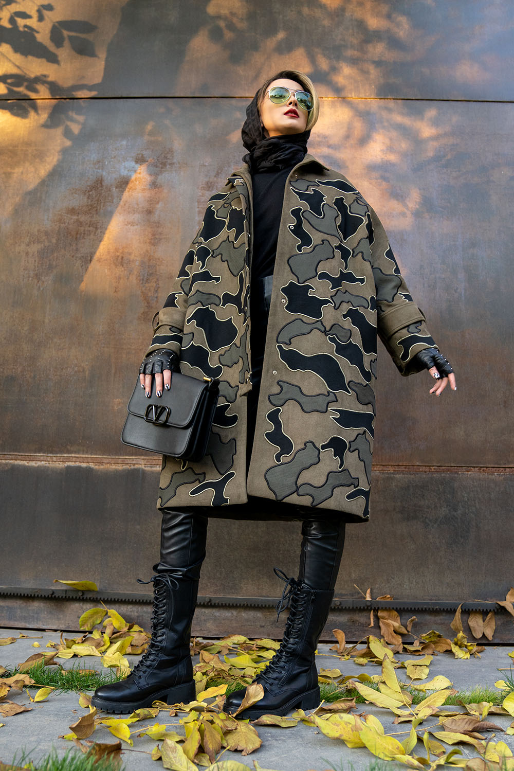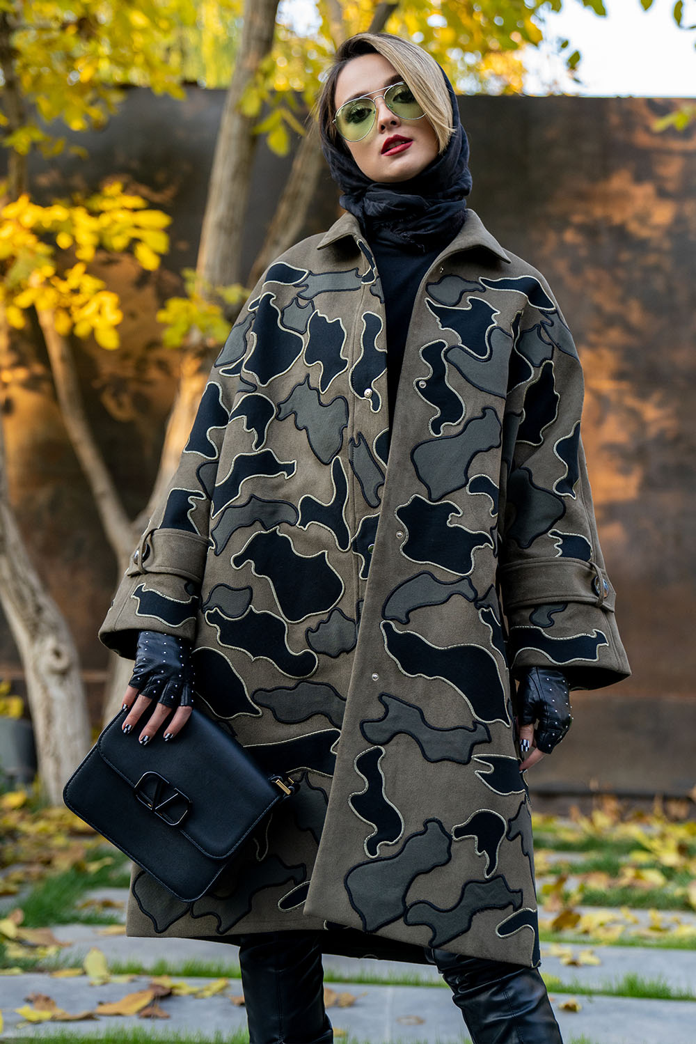 Home2021December Khaki – green/black embossed patterns winter woollen coat midi