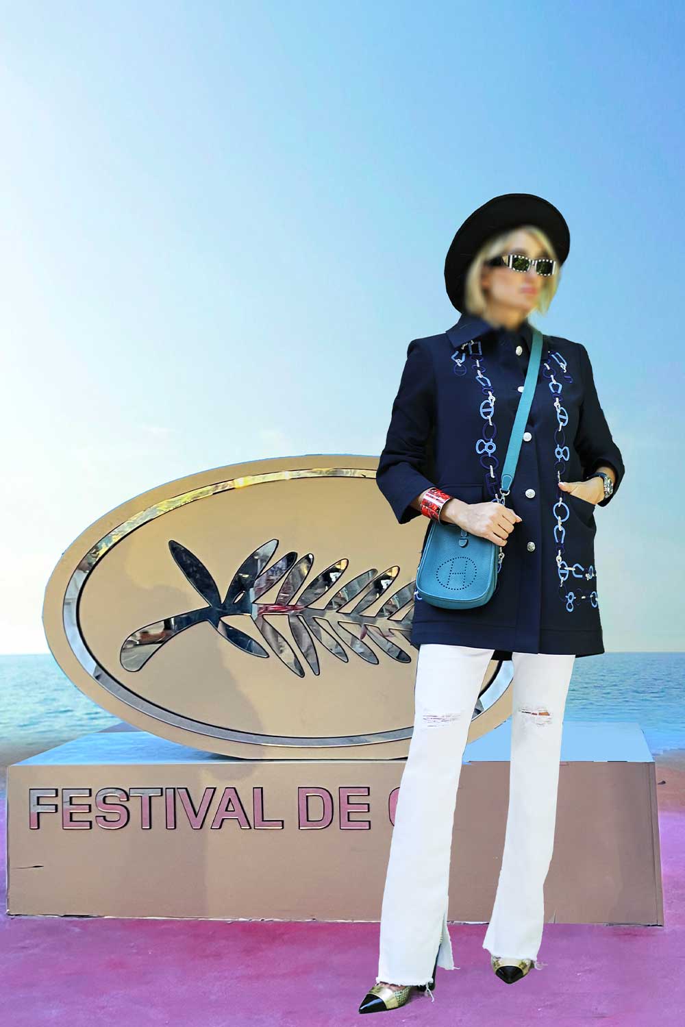 Home2023La Mer Cannes Navy blue midi 3/4 ke thx sleeve jacket with chain and knot’s embroidered in blues and silver on edges