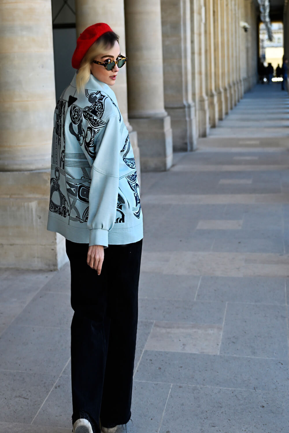 Be the first to review “Powder blue linen jacket featuring tonal navy embroidery with equestrian motifs” Cancel reply