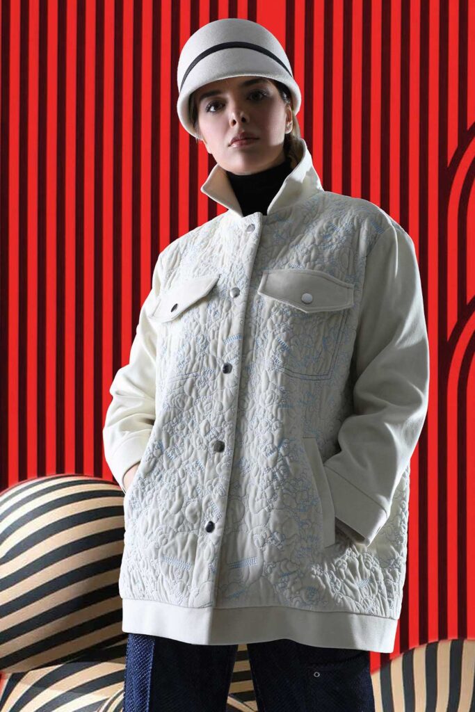 Be the first to review “Single breasted white wool midi jacket with grey patterned teddies embellished all over” Cancel reply