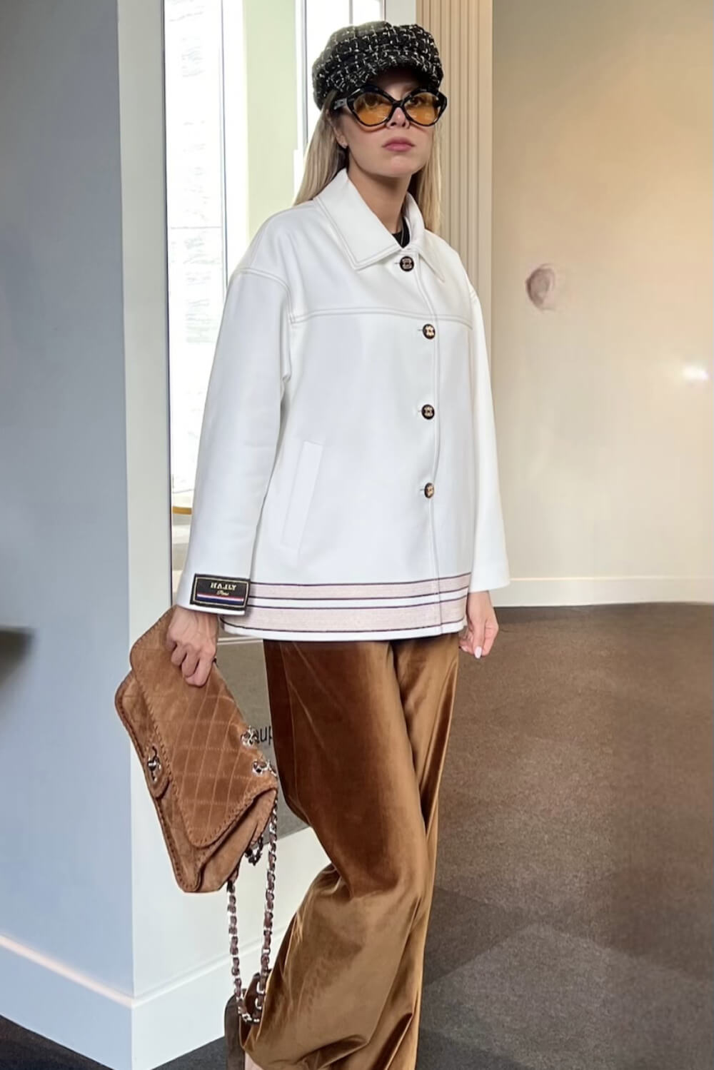 White coat with different motif embroideries on the back